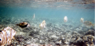 | This photo was taken with a disposable underwater camera. The colors looked washed out so I scanned in the image onto my computer and I pulled it into my image editor. I noticed that the histogram showed that it wasn't using any of the dark colors, so I slid the left marker to the left edge of the graph. The second photo shows how this change enhanced the colors, which is a more accurate picture of what I actually saw. | ||