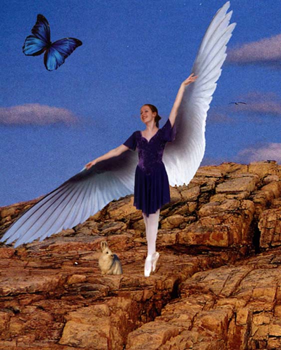 This was from a photograph of my daughter from her last dance recital. I added the wings of a bird to add the grace and uplifting spirit reflected in the dance.