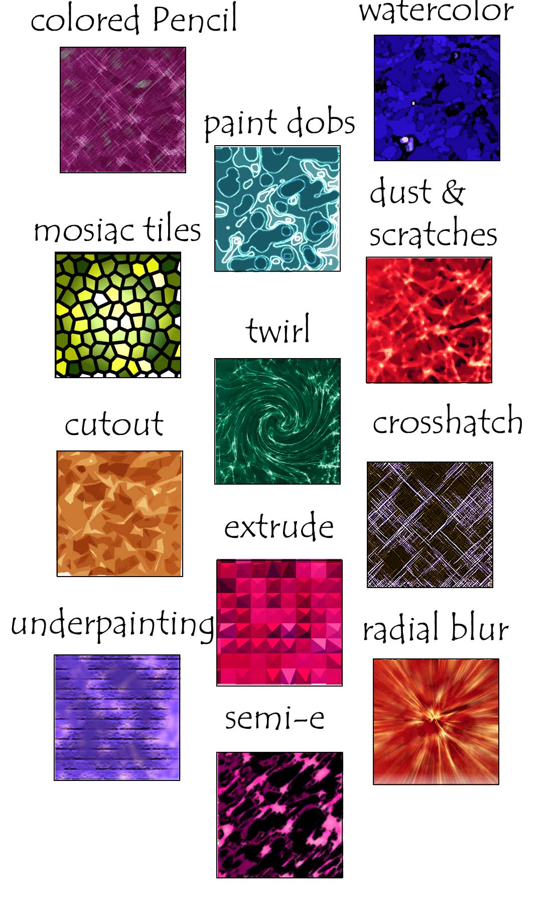 We were to take a single texture and adjust colors and use filters to create new filters. This was kind of fun seeing the variety of textures that were all created from the same picture.