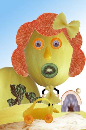 Our first assignment was to take an assortment of pictures of fruits and vegetables and cut and paste them into a scene.